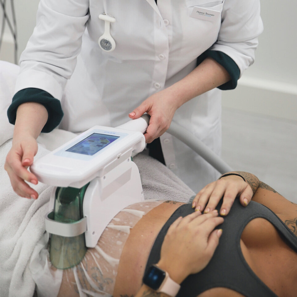 Cool Sculpting eli Cryolipo-laitehoito muokkaa vartalon ongelma-alueita ja vähentää rasvaa ja selluliittia tehokkaasti, turvallisesti sekä täysin kivuttomasti. Se sopii erinomaisesti paikallisten rasvanmuodostumien poistoon esimerkiksi vatsan, selän, kylkien tai käsivarsien alueella.