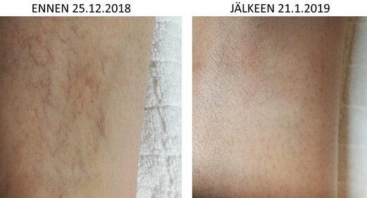 Useimmiten verisuonet alkavat haalistua tai katoavat muutamassa viikossa hoidon jälkeen. Jo yksi hoitokerta voi tuoda näkyviä tuloksia, mutta osa verisuonimuutoksista vaatii 2–3 hoitokertaa.