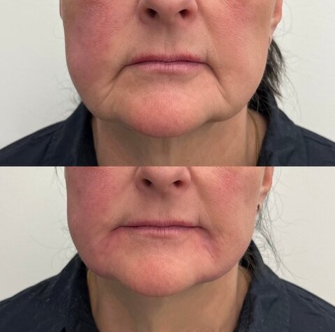 Leuan kärjen täytöllä saa varsin kokonaisvaltaisen muutoksen. Se vaikuttaa koko kasvojen profiiliin sekä kaventaa kaulaa ja leukalinjaa kiristämällä ihoa. Leuan kärjen täyttöön riittää yleensä 1 ml.