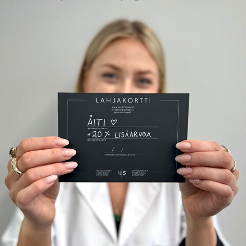 Nordicshapen lahjakortti käy kaikkiin palveluihimme, joten vastaanottaja voi valita itse juuri sen hoidon, joka tuntuu omalta. Lahjakortti on saatavilla haluamallesi summalle ja sen voi ostaa helposti verkkosivuiltamme tai klinikalta paikan päältä.
